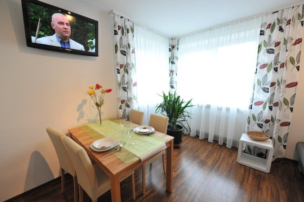 Voll ausgestattete Wohnküche mit E-Herd, Kühlschrank, Mikrowelle, Kaffeemaschine, Schlafcouch für 1 Personen