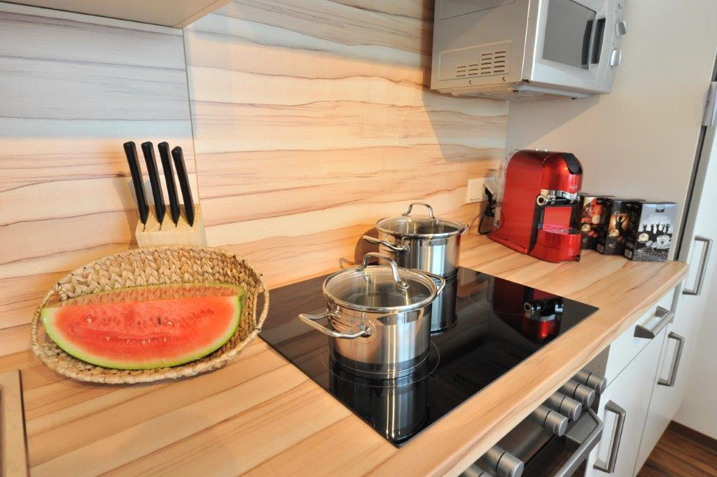 mit E-Herd, Backofen, Geschirrspüler, Kühlschrank, Mikrowelle, Kaffeemaschine, Wasserkocher